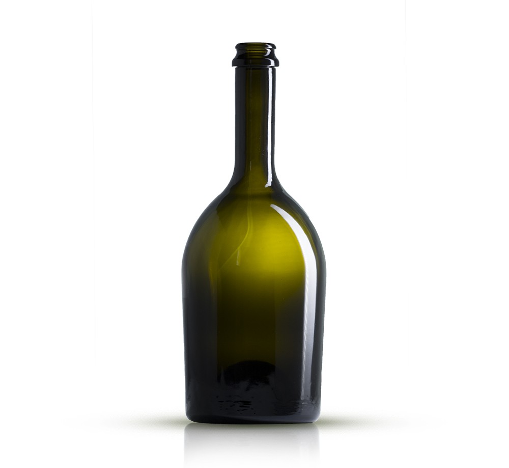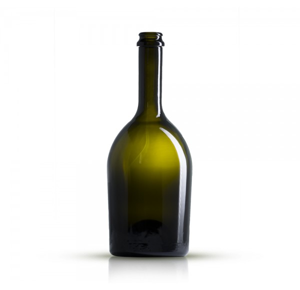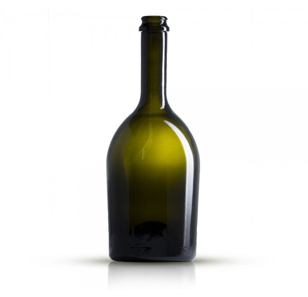 Botella de vidrio ideal para cava y espumosos o cerveza artesanal.